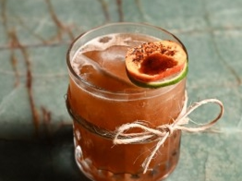 Se há um drink que sintetiza a proposta do Sea Rooftop de forma mais explícita, é o Nordeste na Veia. Cachaça de produção regional, limão e caju adoçado com rapadura formam a base de uma receita que não apenas menciona o território, ela o habita. Servido em copo baixo com gelo translúcido, o coquetel recebe rodela de limão, caju e rapadura flambada na finalização: um gesto técnico que também é narrativo.